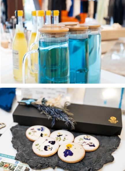 農福連携のビジネスを推進する株式会社AGRIKOの協力により、東京・奄美大島で働く障がいのある方々が、地域特性を活かし丁寧に育てたハーブや花をミックスした国産のバタフライピーティーを提供。また、同社の農園で栽培したエディブルフラワーを用いたクッキーを来場者にプレゼント。