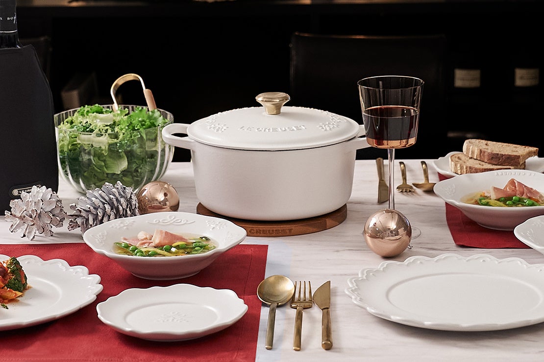 料理と空間の両方を美しく引き立てる、ル・クルーゼの鍋が主役のホリデーディッシュ