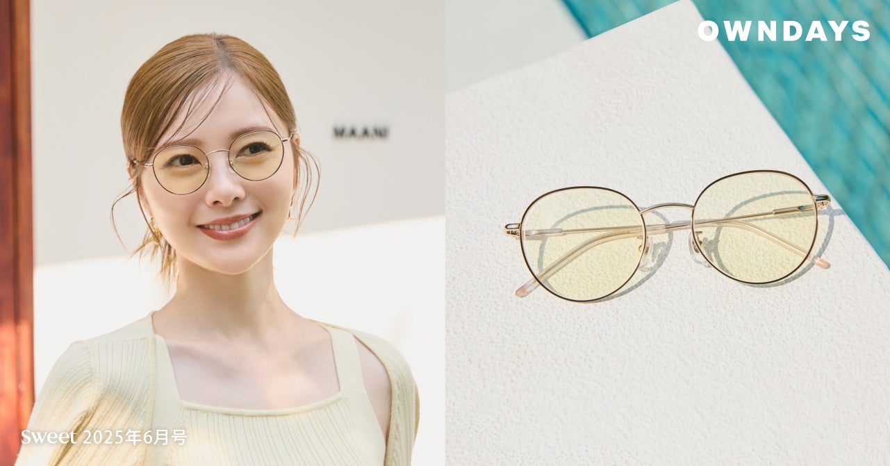 メガネ・サングラスの製造販売を手掛ける株式会社オンデーズ(本社:東京都品川区、代表取締役社長:海山丈司)は、2025年5月12日(月)発売のファッション誌『sweet 2025年6月号』とのタイアップにて、白石麻衣さんがOWNDAYSの新作カラーレンズメガネを取り入れた、夏の着こなしを紹介しています。太陽の光が似合うこれからの季節、肌にそっとなじむ淡色カラーレンズは、コーディネートを瞬時に大人のおしゃれへと格上げしてくれるアイテム。くすみを抑えるブルーレンズや、肌なじみがよく、表情を明るく見せてくれるイエローレンズなど、カラーごとの印象にもぜひご注目ください。この夏は、白石さんのようにメガネと遊びながら、おしゃれの幅を広げてみませんか?