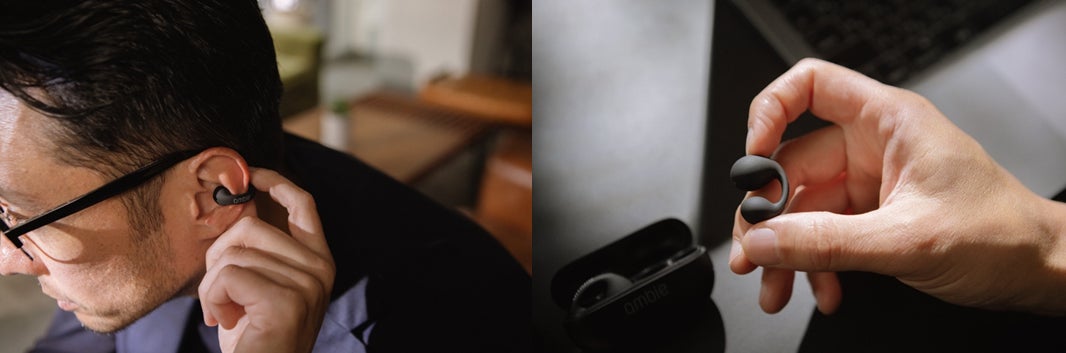 耳をふさがないイヤホン「ambie」とBuddycomが連携