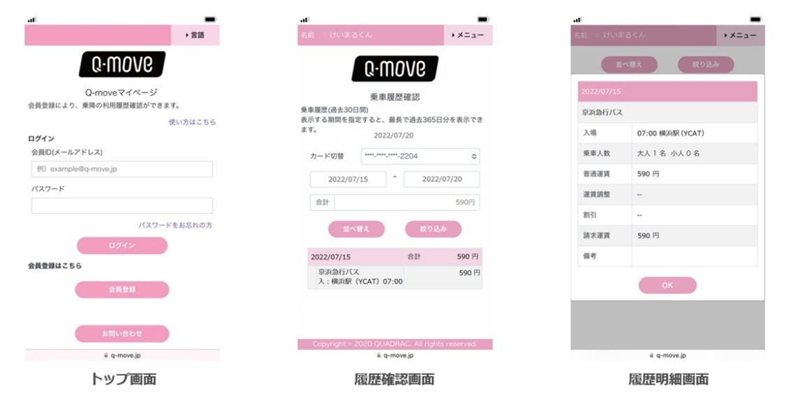 交通事業者向け決済及び認証のプラットフォームを提供するQUADRACのQ-moveサイト(https://q-move.info/)にアクセスいただき、「マイページ」の会員登録手続きの後ご覧いただけます。