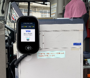 ご乗車時に乗務員にご申告の上、バス車内に設置するVisaのタッチ決済用の端末機に、Visaのタッチ決済対応カードまたはスマートフォン等をかざすことでご利用いただけます。