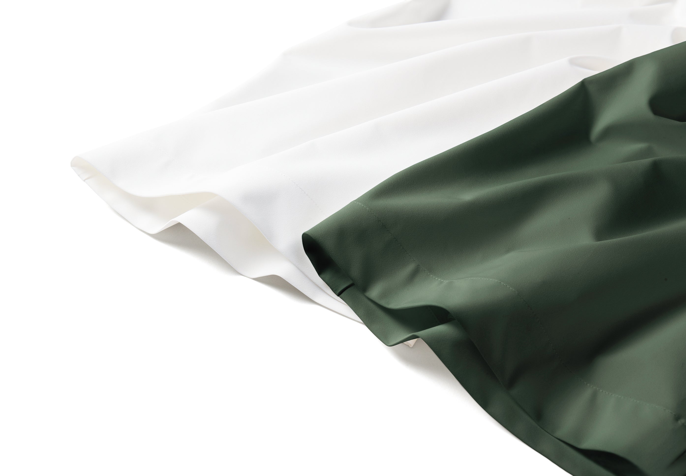 カラー展開は、オフィス使いにも最適なベーシックカラーのホワイト、ネイビーから、秋まで活躍するグレーグリーン、ブラウンまで、様々なシーンに対応した全5色をご用意しました。オフィスのみならず、デイリーでも着用可能な万能アイテムです。