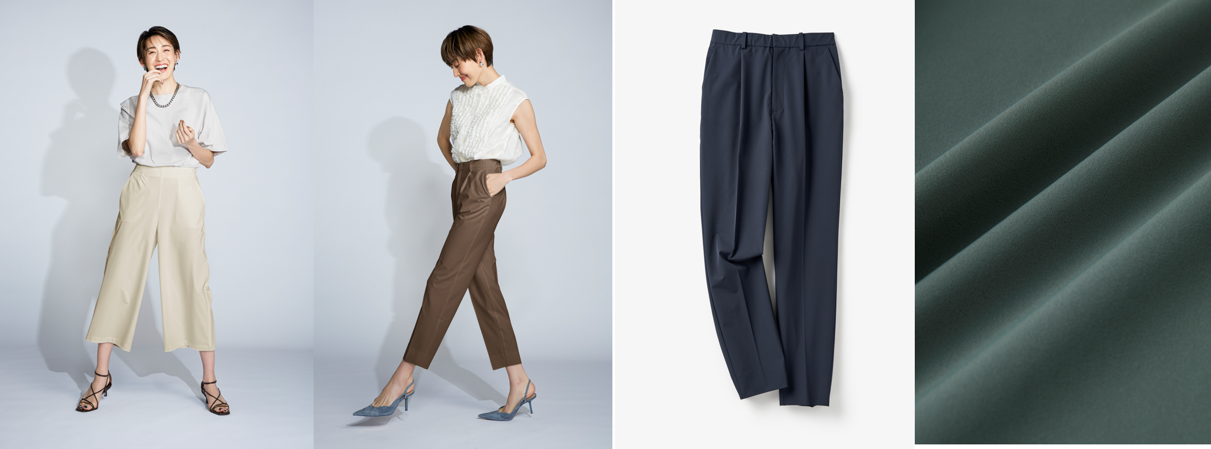 DoCLASSEパンツアイテムの中でもワンランク上の機能性と美しいシルエットを兼ね備えた「5コンフォート」シリーズで、真夏もストレスフリーにお洒落をお楽しみいただけます。