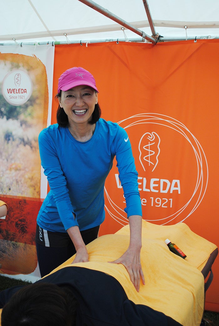 アルニカマッサージオイルを使用し本番前後のコンディションを整えるマッサージを、日本のスポーツアロマトレーナーの第一人者である神崎貴子先生により、レース前日の4/15(土)19:00〜開催いたします。
