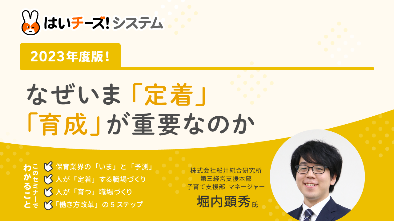 待機児童問題解消時代の園の次世代リーダーを定着させる!「2023年度版!なぜいま”定着” “育成” が重要なのか」セミナーを開催~主催:千株式会社(講師:株式会社船井総合研究所 堀内顕秀氏)~