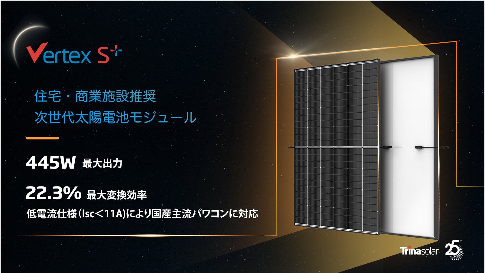 住宅・商業施設に推奨するVertex S+は片面発電、両面発電をラインアップ。国際的に電流値の高いソーラーパネルが多数流通している中、日本性のパワコンに適用可能なパネルは多くありません。トリナ・ソーラーは、そういった状況を鑑みて、スリーカットセルによる低電流設計で主流国産パワコンに適応できるパネルを提案します。