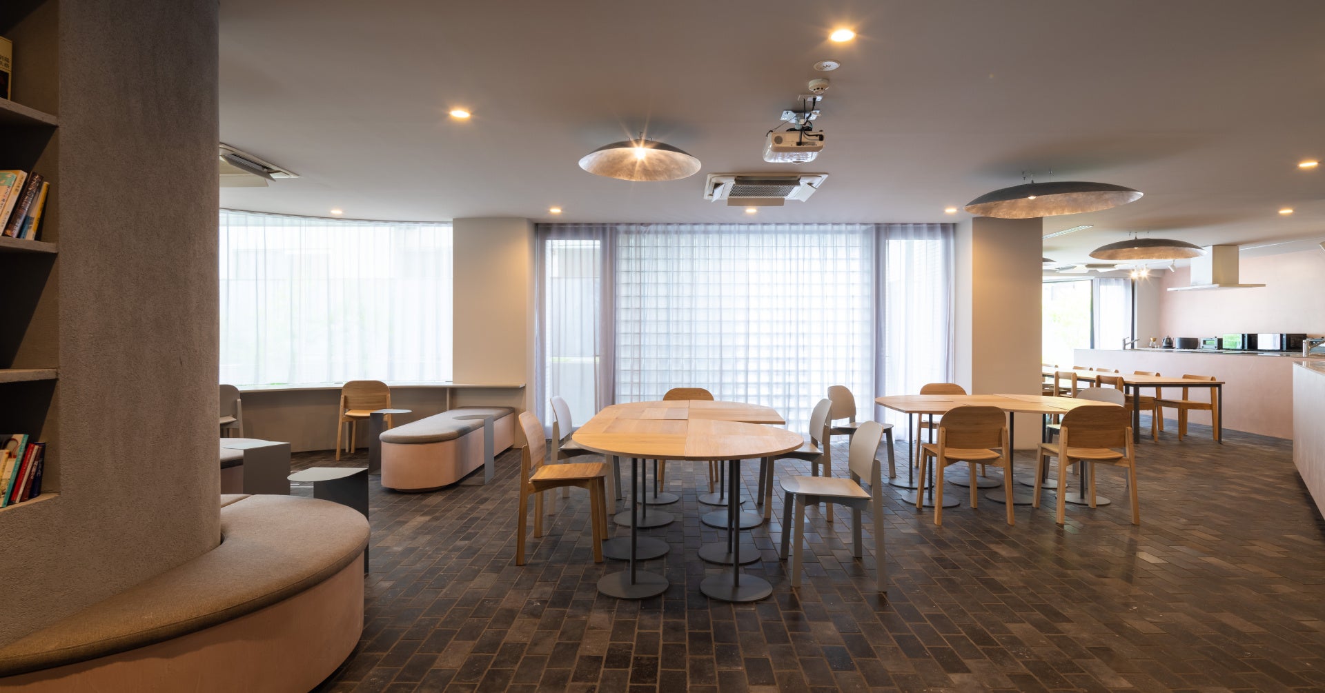 空間デザインは、株式会社ミハデザイン一級建築士事務所が手がけ、既存の独身寮をコンセプトである「街と混ざる」を体現する計画としました。また、専有部4室の造作家具のデザインも担当しています。