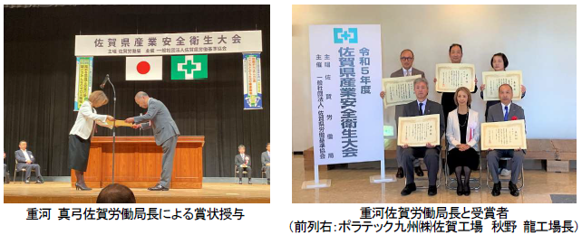 令和5 年度「安全衛生に係る佐賀労働局長表彰」ポラテック九州(株)が奨励賞(安全確保対策)を受賞