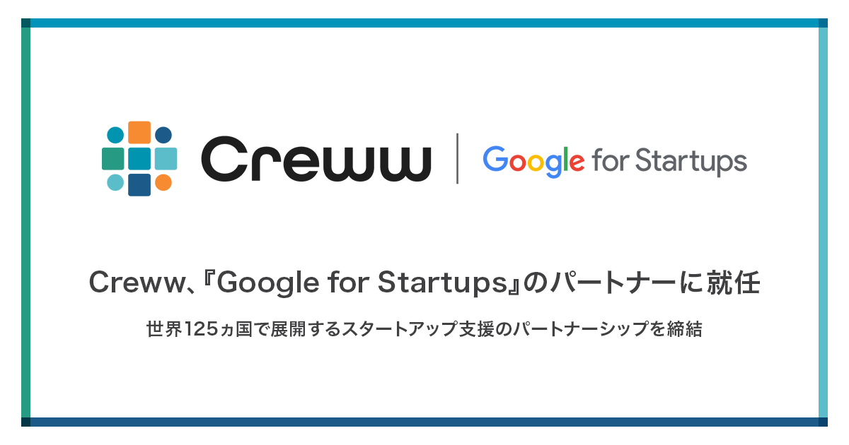 Creww株式会社(代表取締役:伊地知 天、以下、「Creww(クルー)」)は、Google が世界125ヵ国で展開するスタートアップ支援プログラム『Google for Startups』のパートナーに就任したことをお知らせします。