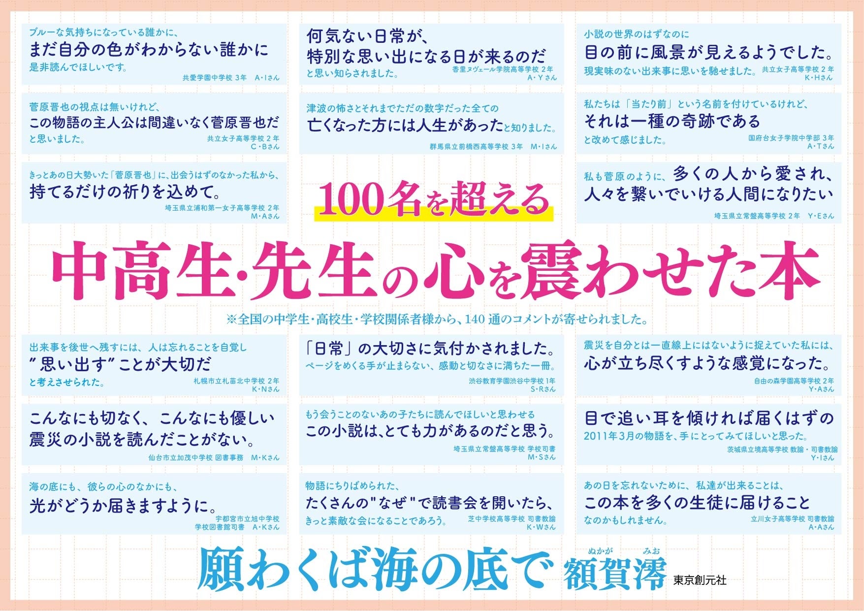 『願わくば海の底で』の刊行にあたって、全国の学校関係者に作品の先読みを募集したところ、たくさんの応募と感想コメントが寄せられました。