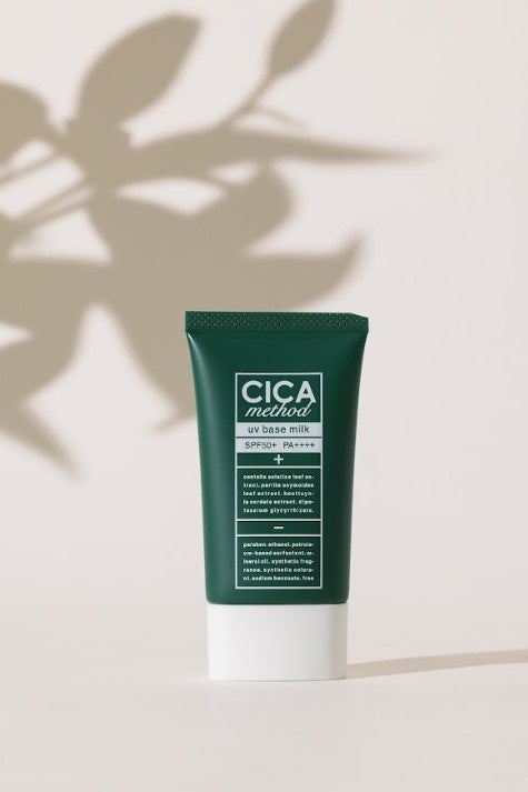 朝用UV乳液「UV base milk」は、SPF 50+ PA++++で、しっかりUVケア。“ツボクサエキス*”と日本古来の植物(ドクダミ、シソ、サクラ、ハトムギなど)成分*を配合し、UVカットと同時に肌荒れを防ぎます。精油を調合したさわやかなエッセンシャルハーブの香りで、使い心地も◎