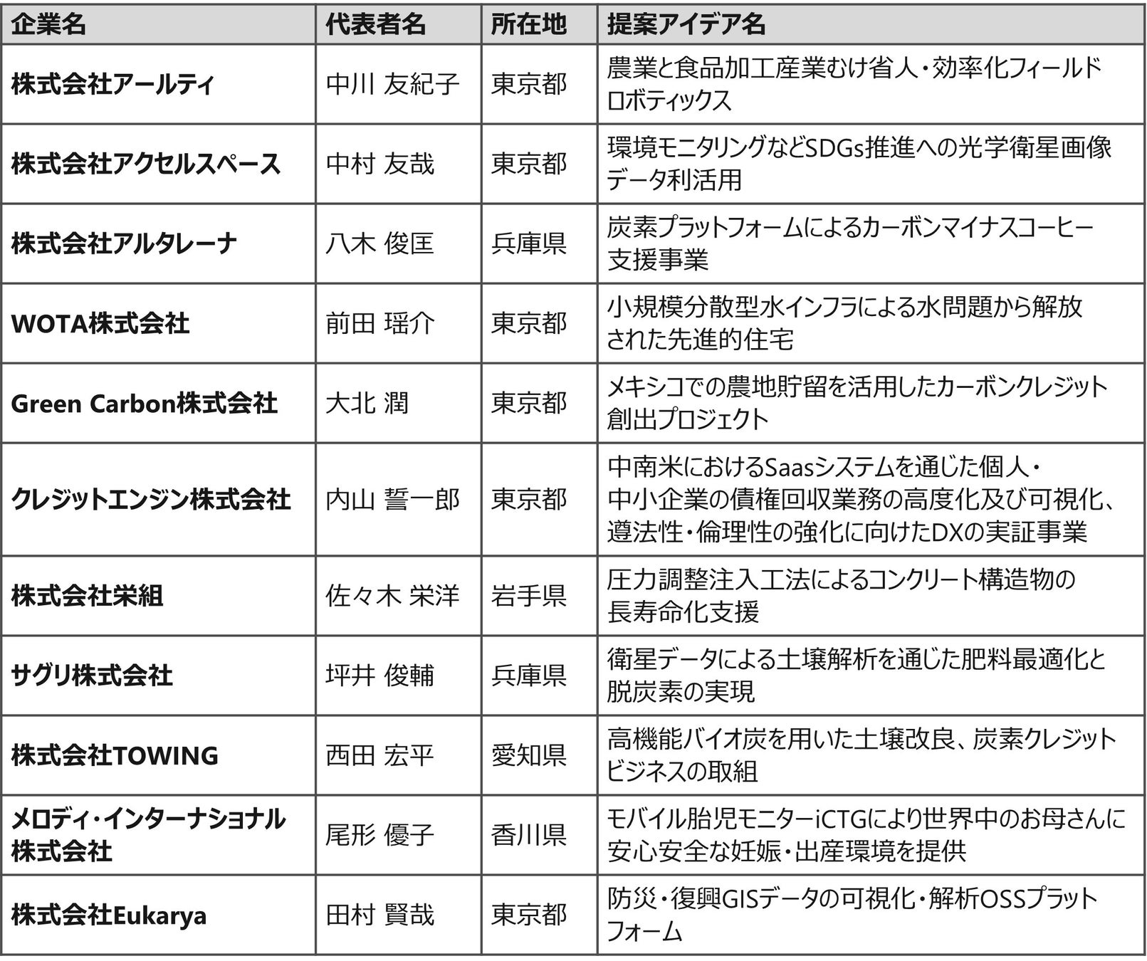 本年度は、1月6日より公募を開始し、中南米・カリブ地域のSDGs達成の観点で非常に魅力的なアイデアを有する29社からの応募がありました。厳正なる審査の結果、11社が採択企業として選定されましたのでご紹介します。
