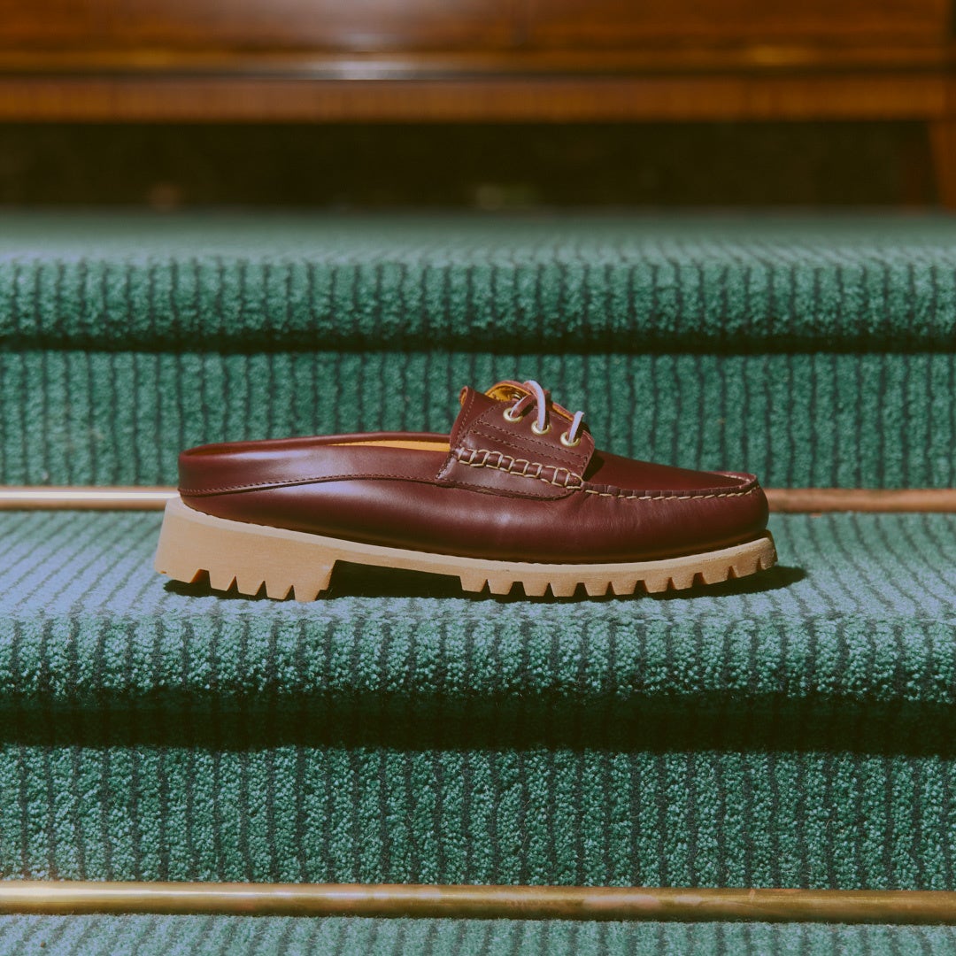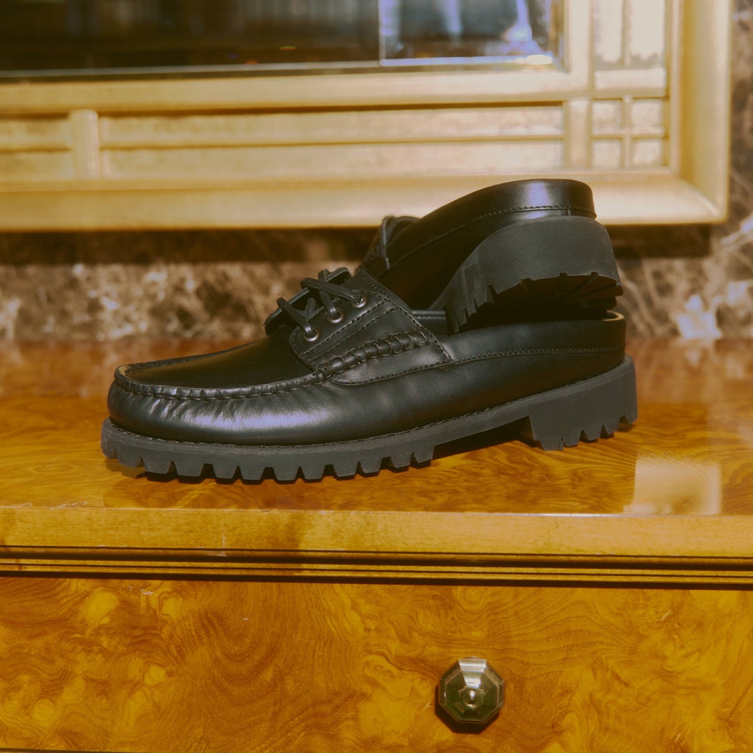 『3eye Classic Lug』は手縫いで仕上げたティンバーランドの伝統的なモカシンシューズ。クラフトマンシップがふんだんに盛り込まれているモカシンシューズがビブラムソールを採用したMuleで登場。カラー展開は伝統的な伝統的なバーガンディーと定番には無いブラックで新型が発売。