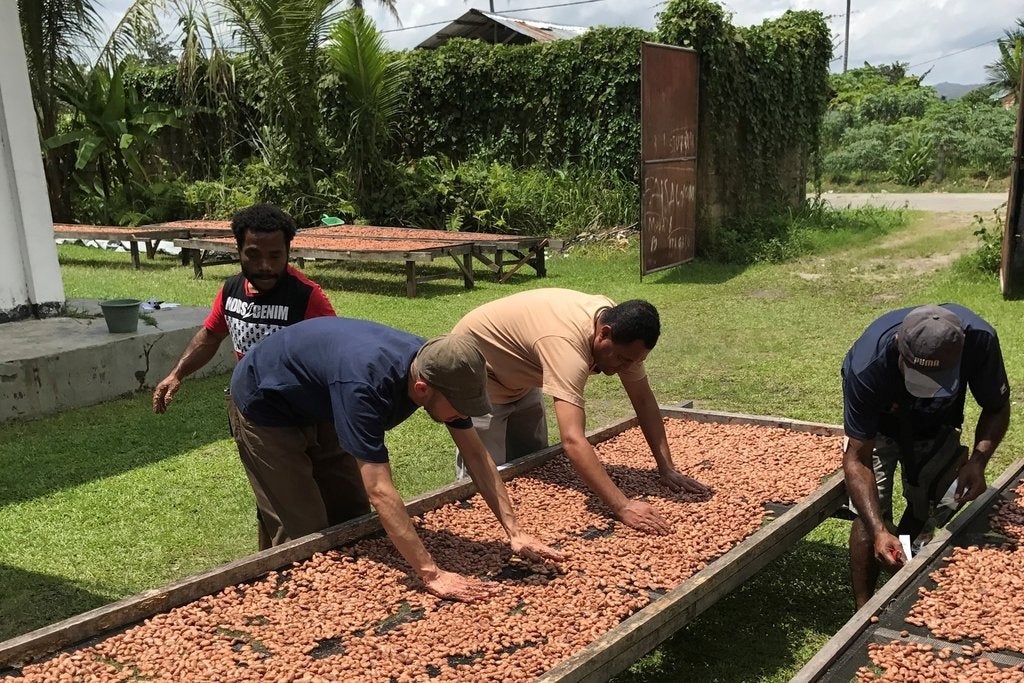 ※発酵・乾燥について、現地の農家の方々に指導する朝日