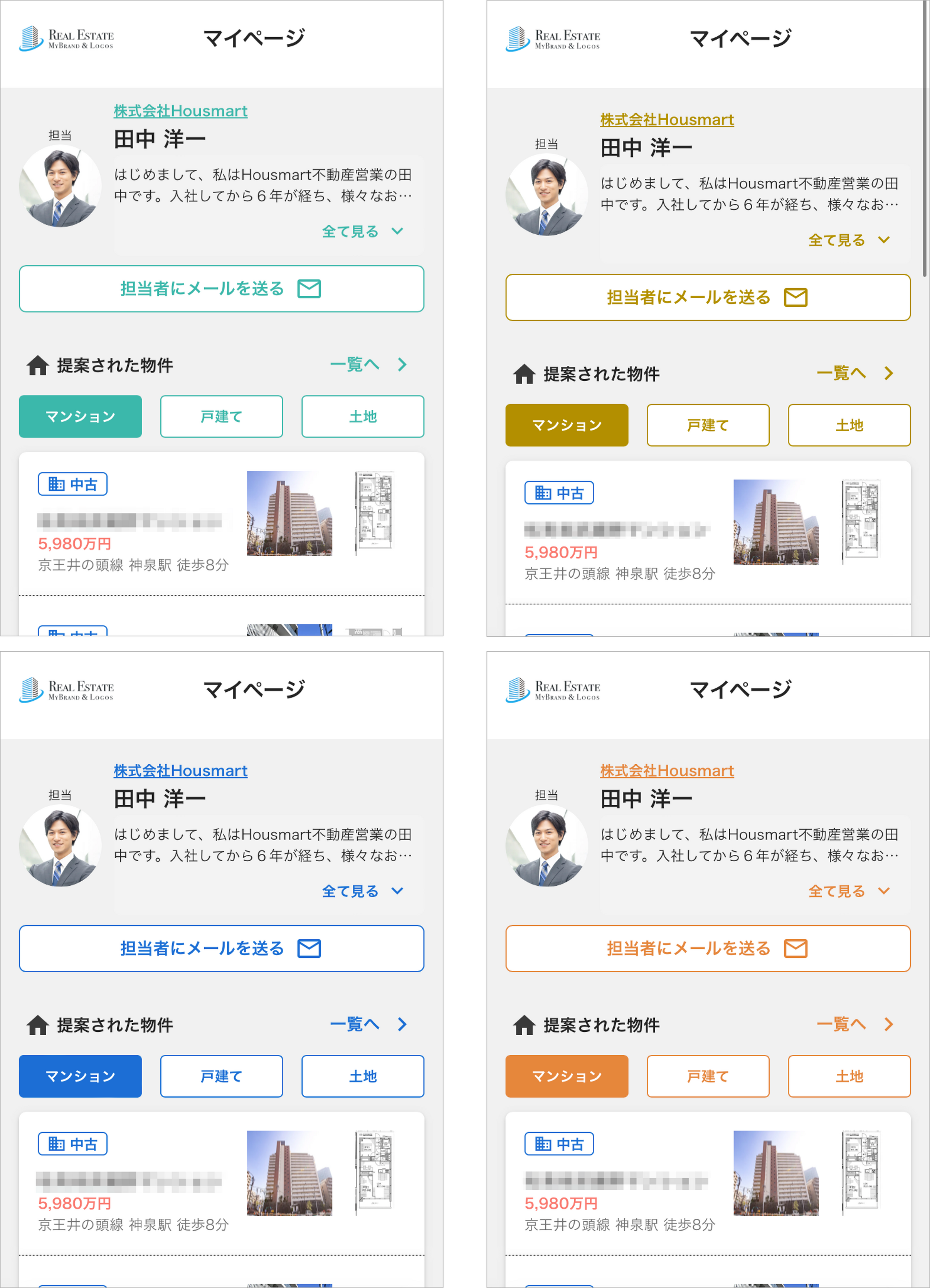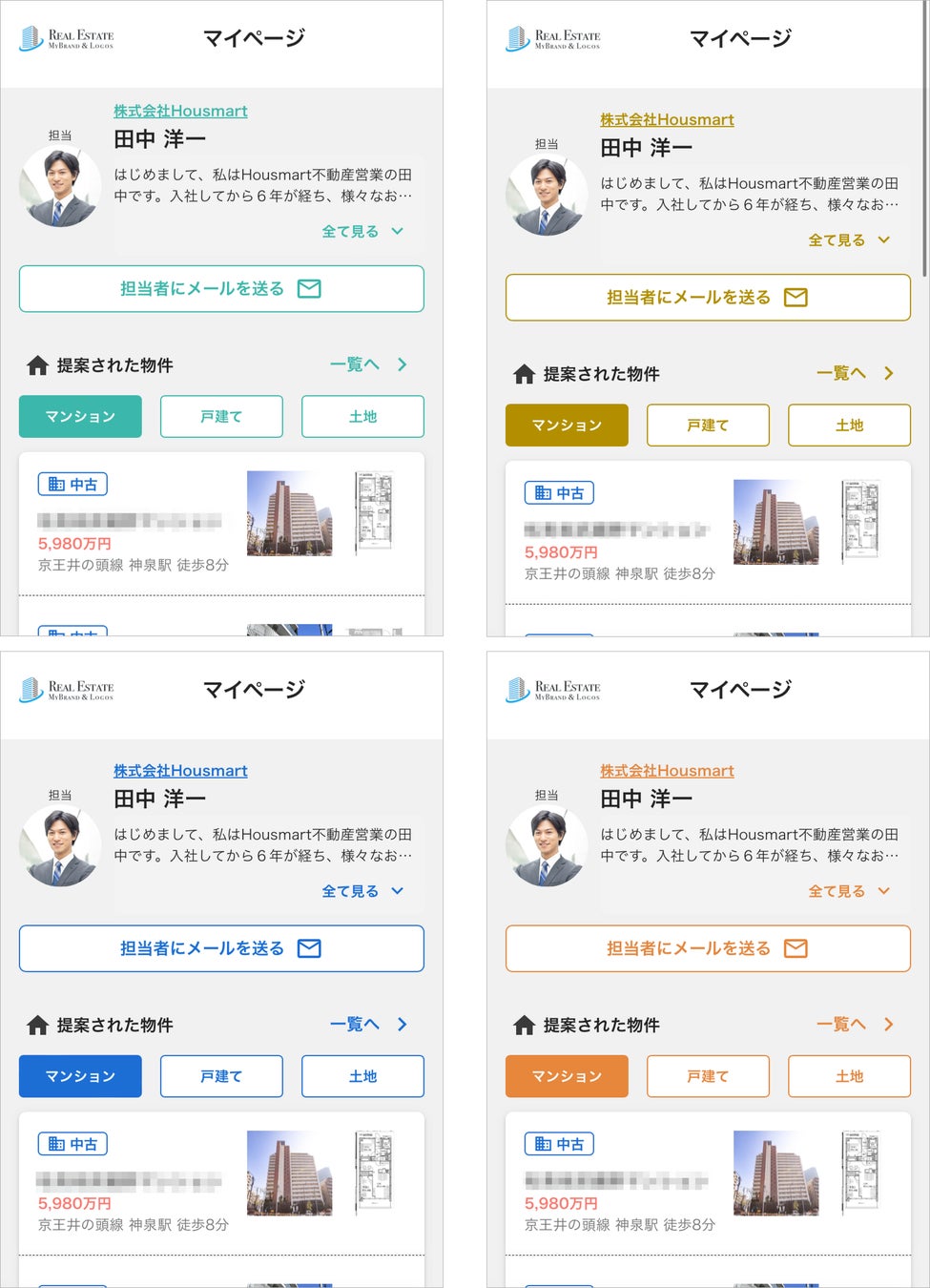 メールテーマで設定したカラーがマイページにも適用されます。(物件提案メールとマイページは同じカラーになります。