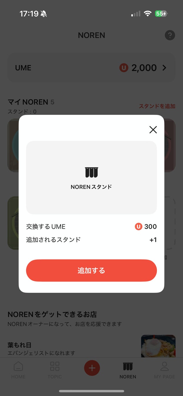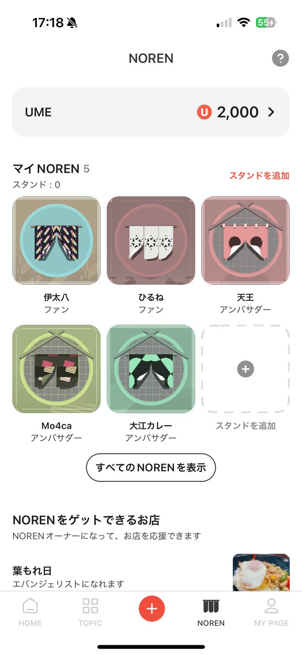 このたび、SARAHでは、ユーザーが保有できるNOREN NFTの上限を拡張するための「NOREN Stand」機能をリリースしました。「NOREN Stand」は、ユーザーがSARAHアプリ内で投稿などを通じて獲得したUMEを使用して購入することができ、これによりNOREN NFTの保有上限を増加させることが可能です。これにより、ユーザーはより多くのお店を応援できるだけでなく、応援活動が一層活発になることが期待されます。