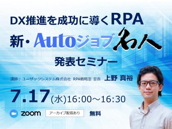 新・「Autoジョブ名人」の発表セミナーを行います。DX実現のため、まずはRPAにて業務デジタル化を進めたいとお考えの方は、ぜひセミナーにお申し込みください。