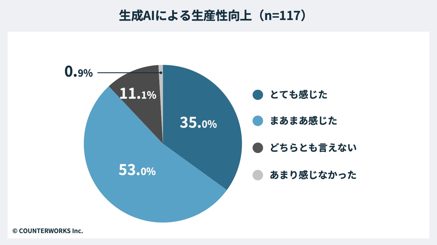 生産性向上の実感は88%。文章の作成・要約・構成整理など、情報を整える業務で効果が顕著。