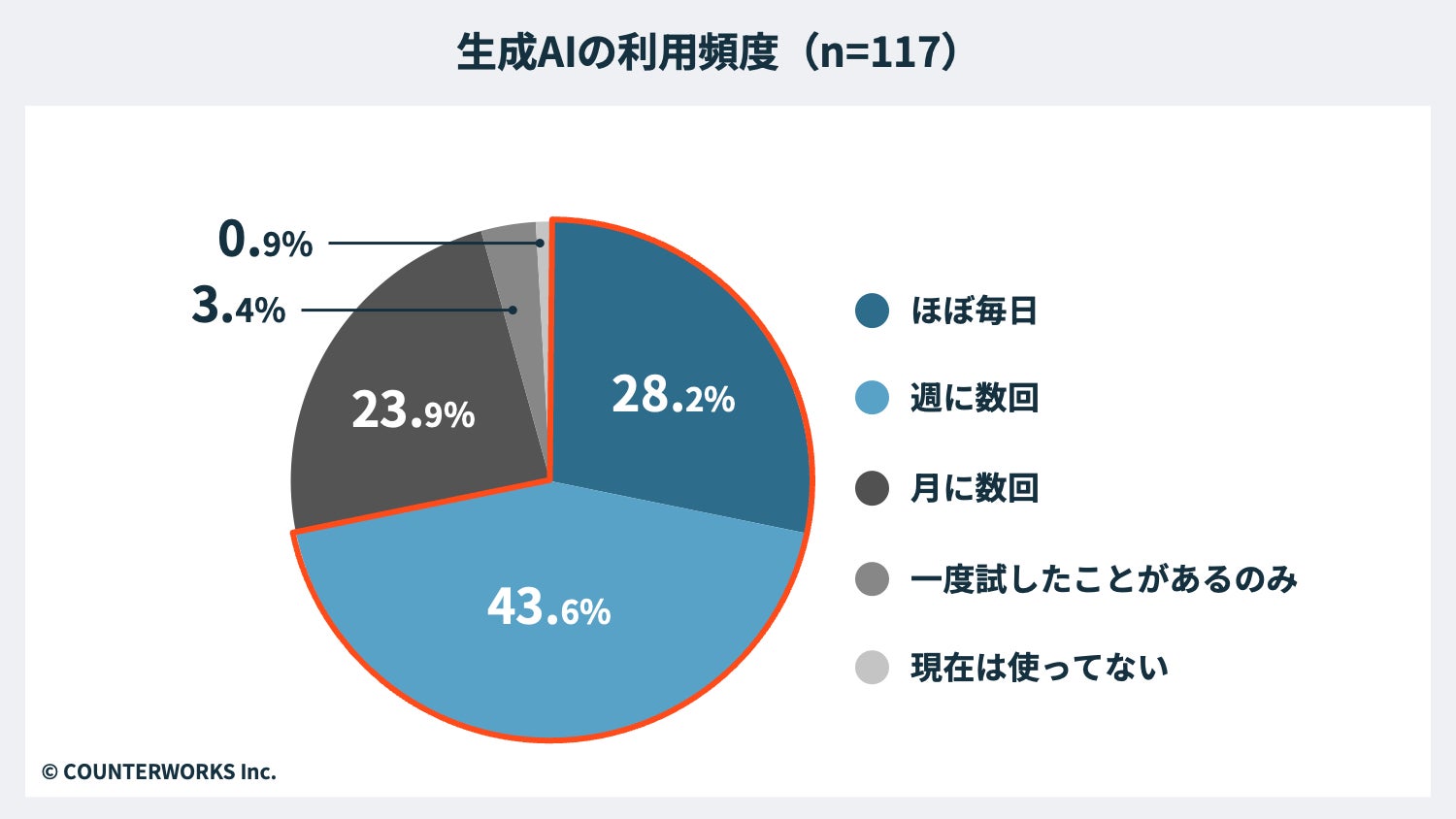 商業不動産をデジタル化し新たなインフラの創造を目指す株式会社COUNTERWORKS(本社:東京都港区、代表取締役CEO:三瓶 直樹、以下「カウンターワークス」)は、一般社団法人日本ショッピングセンター協会(本部:東京都文京区、会長:菰田 正信)が発行する月刊ショッピングセンター(以下、「SC」)専門誌『SC JAPAN TODAY(エスシー・ジャパン・トゥデイ)』と共同で、全国のSC等商業施設事業者の従業員95社156人を対象に「商業施設事業者における業務での生成AI活用の実態調査」を実施しました。