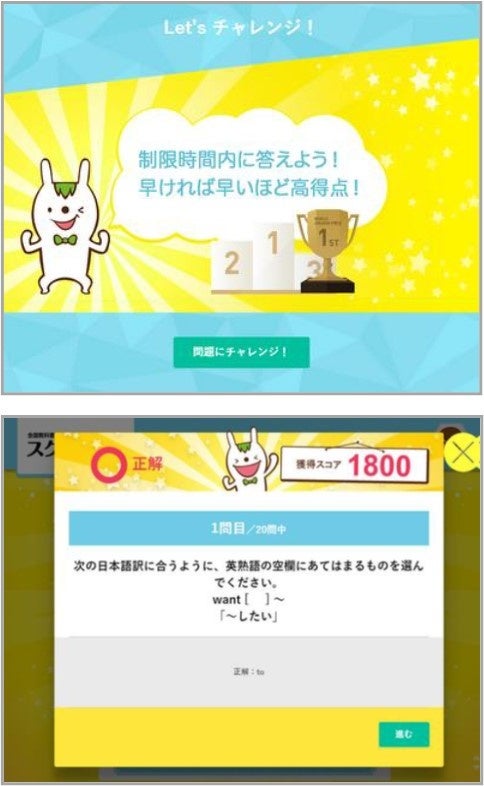 小中学生無料動画学習コンテンツ「スクールTV」で、学習習慣が身に付いた児童・生徒がもう1つ上の目標を目指すために開始された課金サービスです。ゲーム感覚で楽しみながら反復学習を身につける“ゲーミフィケーション”を採用することで、印象に残りやすく継続しやすい学習が可能となっています。