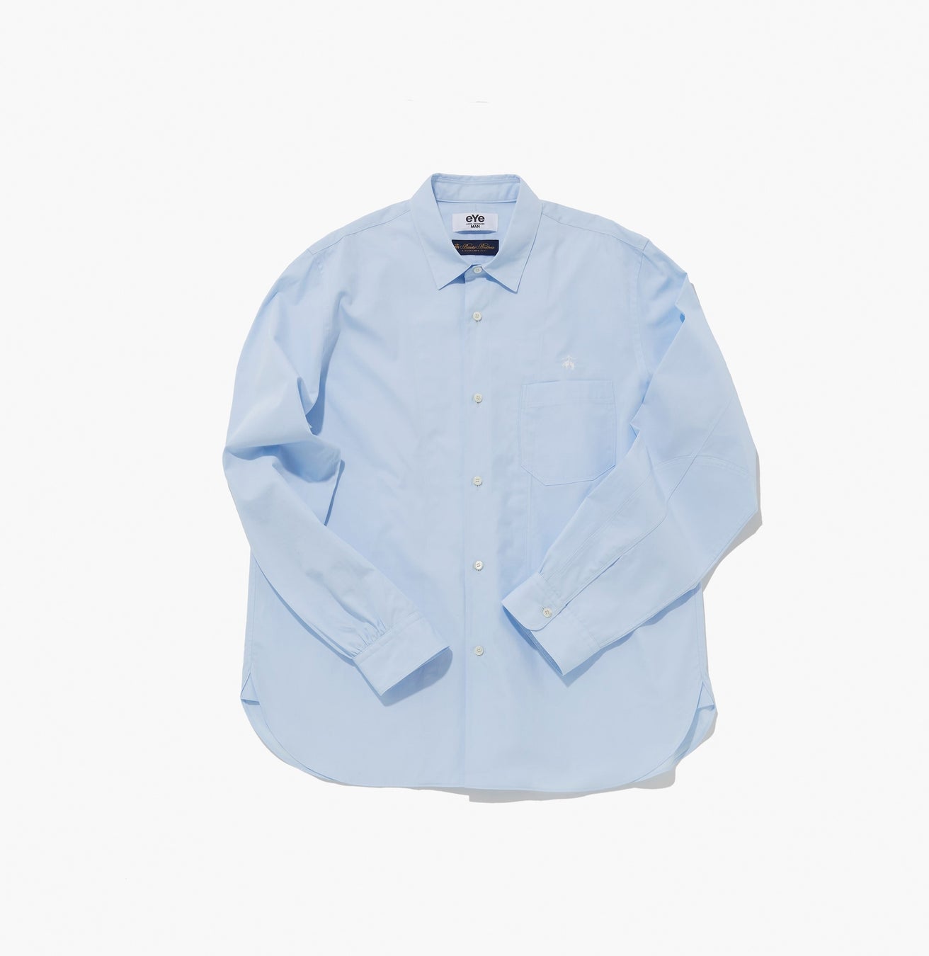 最もアイコニックなオックスフォードのポロカラーシャツ(定番のリージェントフィット)には、襟と袖口部分を独自のパターンへ作り替えeYe JUNYA WATANABE MANカラーへと仕上げています。裾の内側にはブルックス ブラザーズの織ネームが施されています。シンプルなコットン素材のブルーのシャツは、両肘に施されたエルボーパッチのデザインや白のランダムステッチがアクセントに。巻き縫い仕様のボタンダウンシャツは自然なパッカリングが特徴で、ヨークの裏側や裾のガゼットに別布のシャツ生地を使用。また、通常のボタンダウンカラーよりも小さくした襟がポイントです。eYe JUNYA WATANABE MAN定番の天竺素材を使用したTシャツは、フロントにクラシックなeYeのロゴ、ブルックス ブラザーズのシンボルマークであるゴールデン フリースをバックプリントであしらったデザインです。