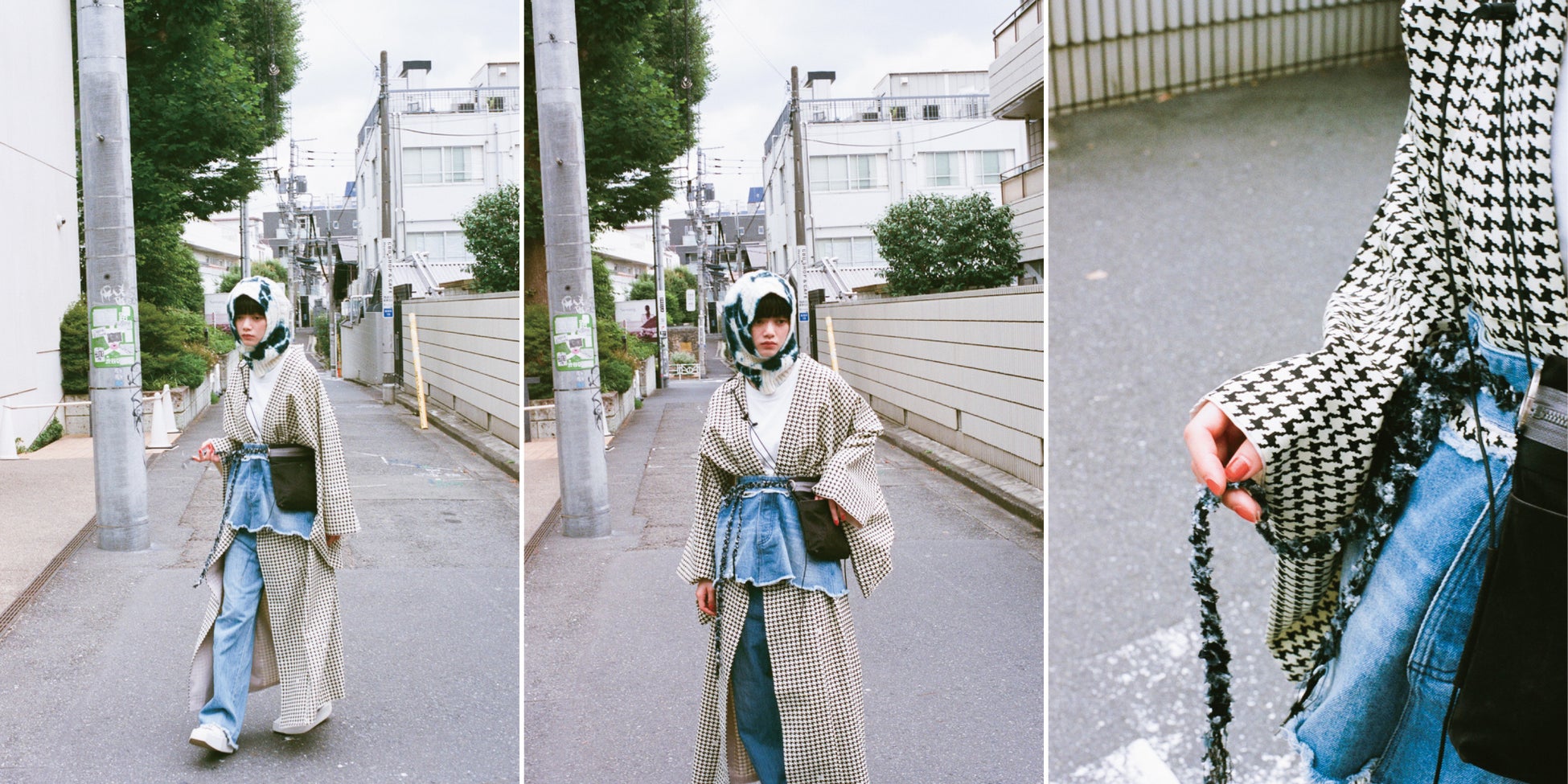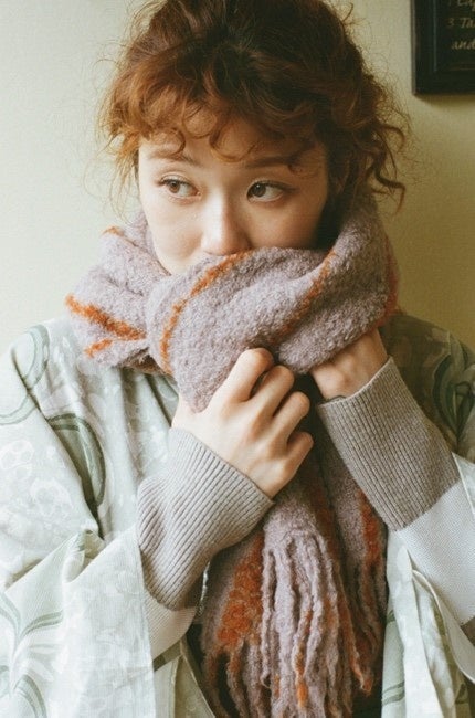 有松鳴海絞りをルーツに待ち、ドイツを拠点に日本の技術を世界へ届けるブランド<suzusan>に製作いただいたショールとセレクトしたバラクラバが登場します。