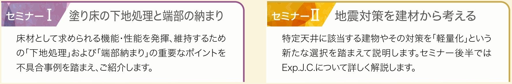 安心・安全を守るExp.J.C.の基礎知識/新しい意匠材提案