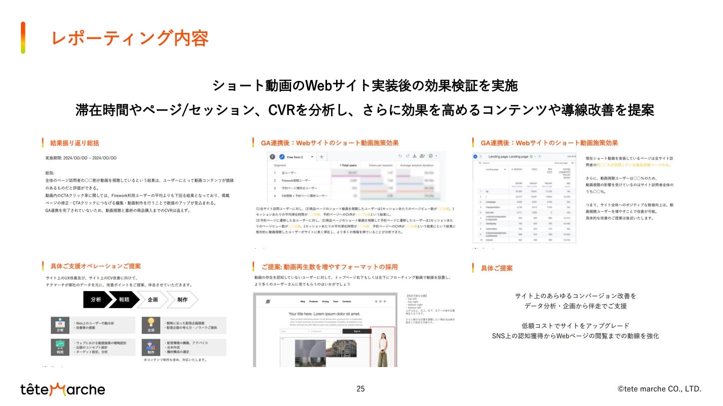 ショート動画の制作からWebサイトへの実装・分析・改善までを一気通貫で対応します。