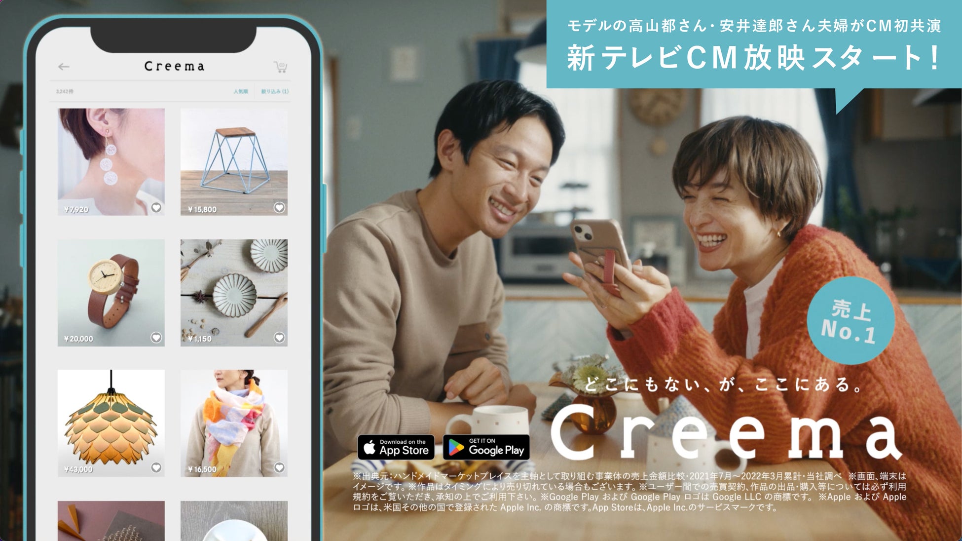 日本最大級のハンドメイドマーケットプレイス「Creema(クリーマ)」を運営する株式会社クリーマ(本社:東京都渋谷区、代表取締役社長:丸林耕太郎、以下クリーマ)は、高山都さん・安井達郎さん夫婦を起用した新テレビCMを、本日8月27日(土)より首都圏及び関東・関西全域を始めとする全国の大都市圏を中心に放映開始いたします。