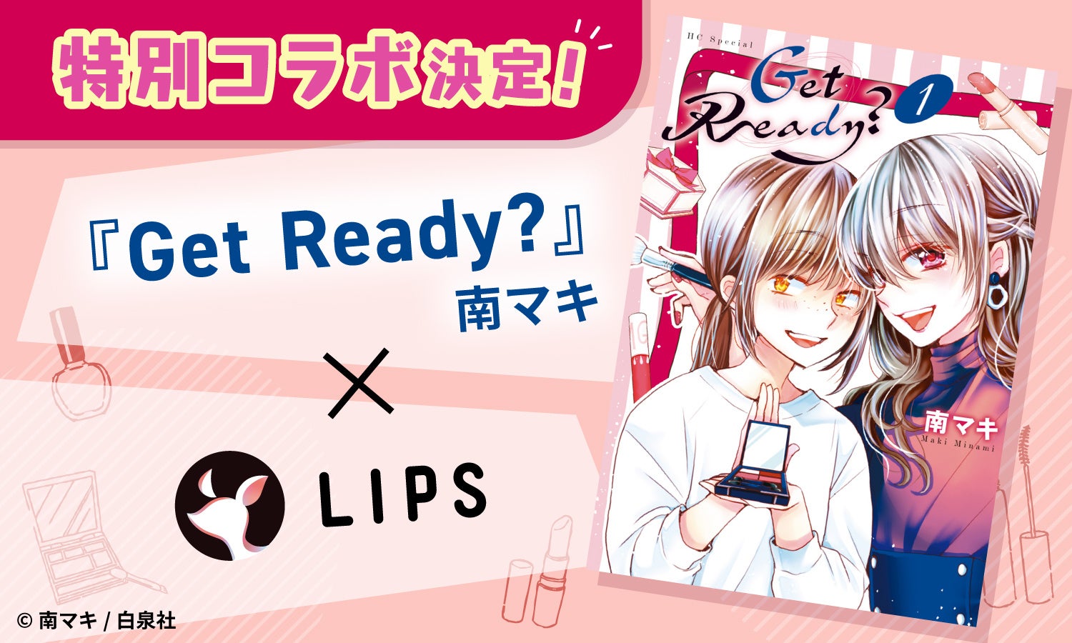 株式会社AppBrew(本社所在地:東京都文京区、代表取締役:深澤雄太)が運営する美容プラットフォーム「LIPS(リップス)」は、2024年10月2日(水)、SNSで話題の『Get Ready?』(南マキ/白泉社)との特別コラボとして、LIPSアプリ内にて原作コミックの配信を開始することをお知らせいたします。