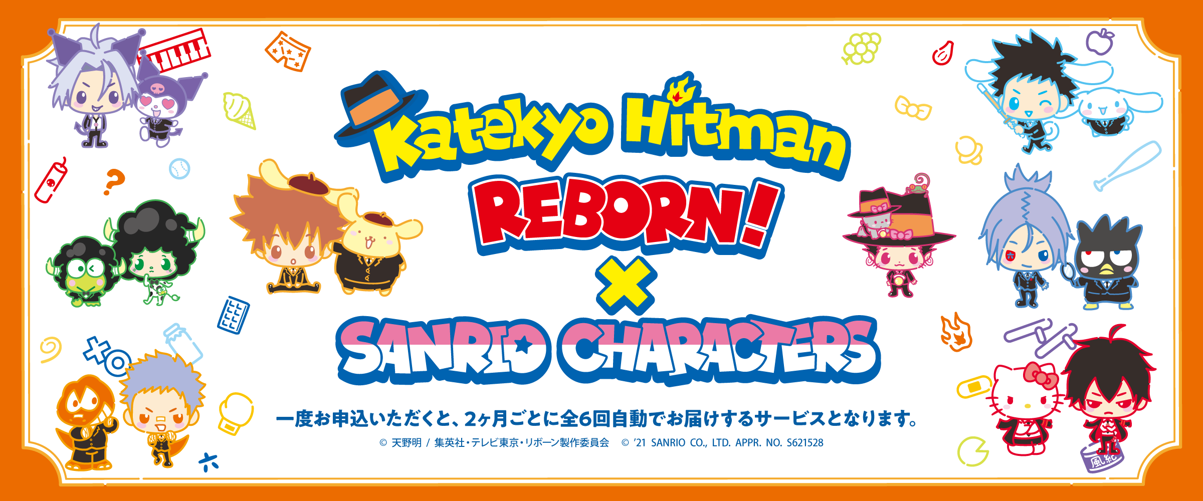 「家庭教師ヒットマンREBORN! ×サンリオキャラクターズ」オリジナルアイテムを1BOXにしてお届け!継続アイテムやお役立ちアイテムなど、【全6回シリーズ】で継続してお送りします!