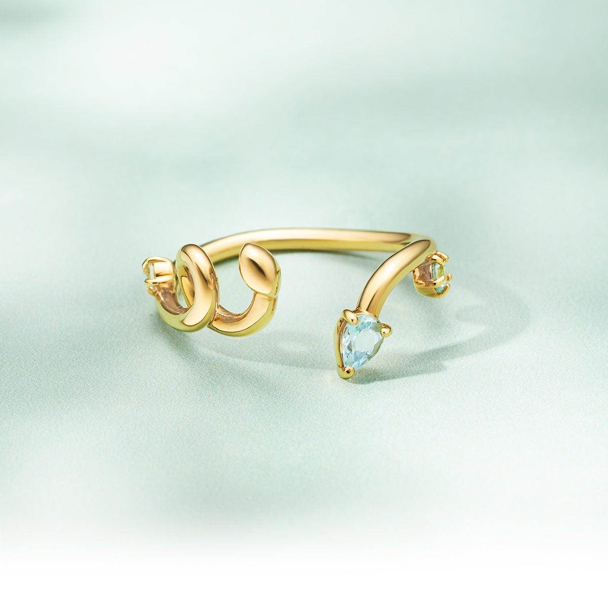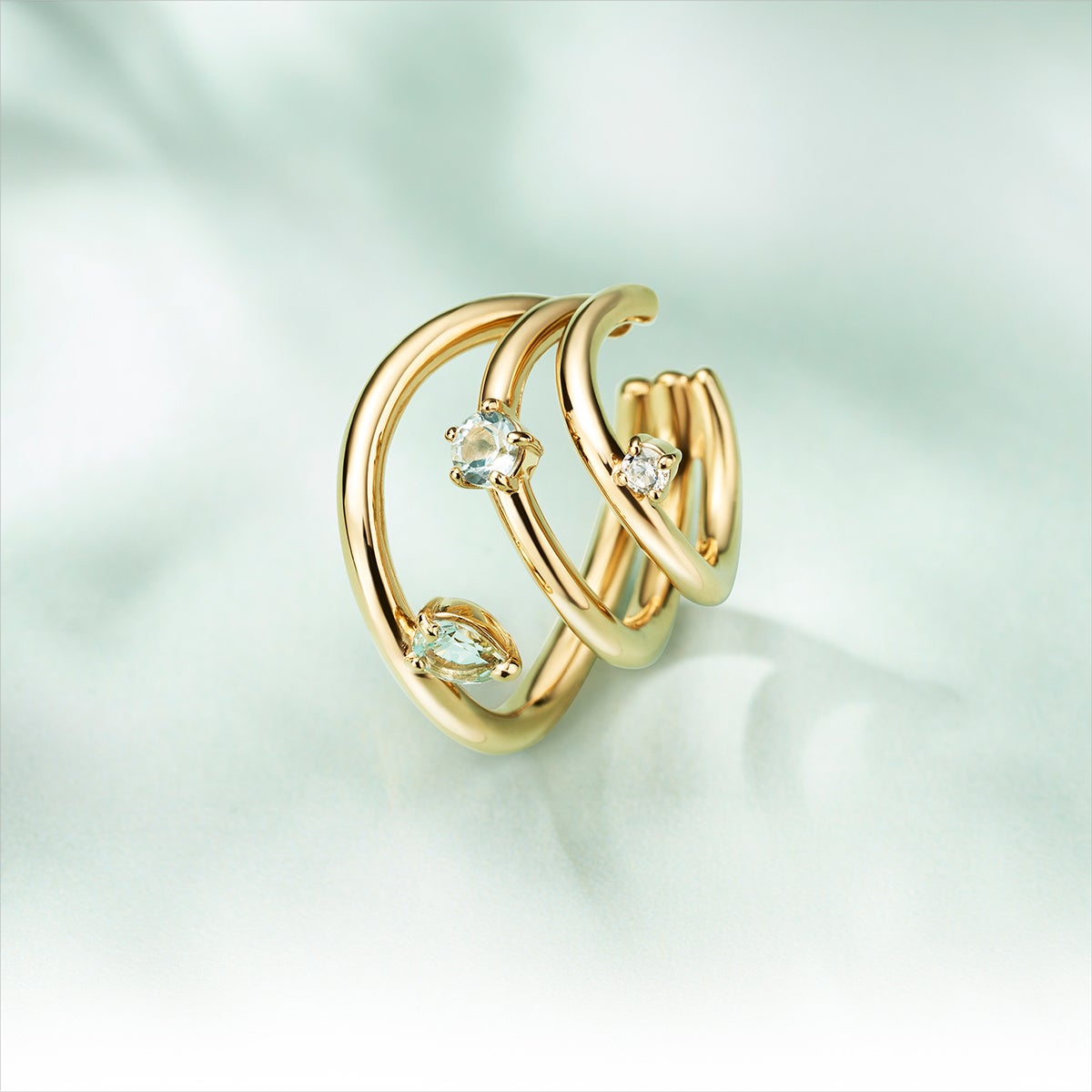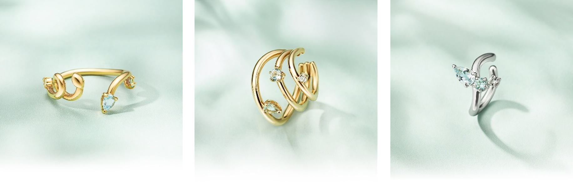 From left: SV(YGc) Cuff Ring/Aquamarine/Synthetic Spinel/Topaz ¥9,900