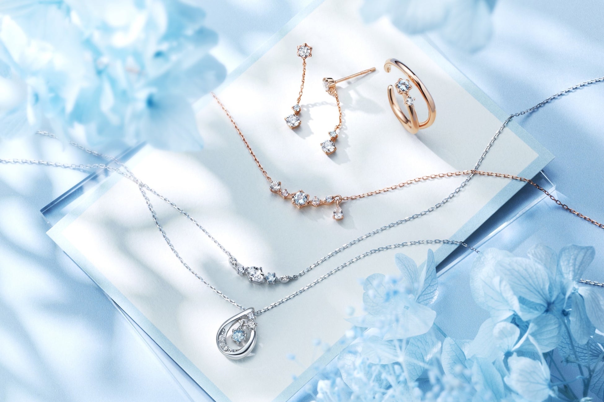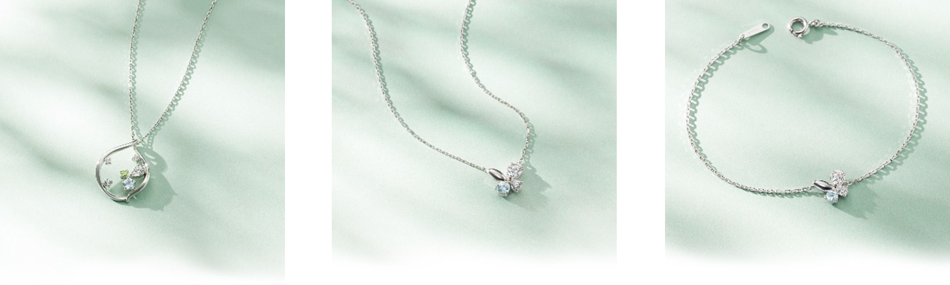 人気モチーフに“Botanity”のエッセンスをプラスしたスプリング限定ジュエリー。植物のみずみずしさを映したブルーのカラーストーンが涼やかにきらめきます。