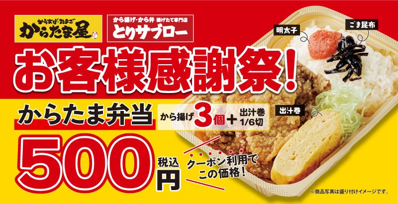 ・条件 : 1アカウントにつき、からたま弁当1個を500円(税込み)でご購入いただけます。