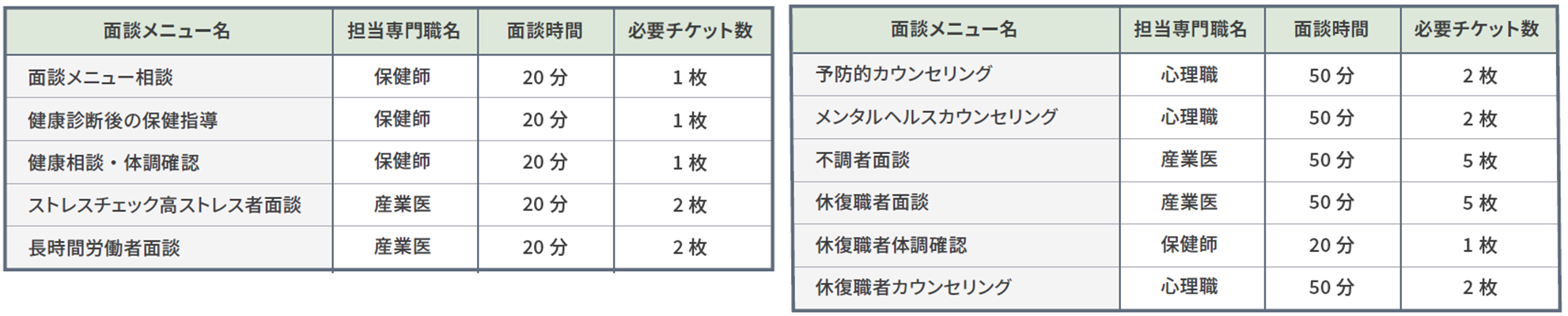 『Sanpo保健室』は、産業医や保健師、心理職が実施する全11種の面談を、チケット制で受けることができる企業の人事労務ご担当者向けオンラインサービスです。