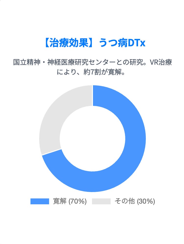 【治療効果】 うつ病患者の約7割が寛解(国立精神・神経医療研究センター)