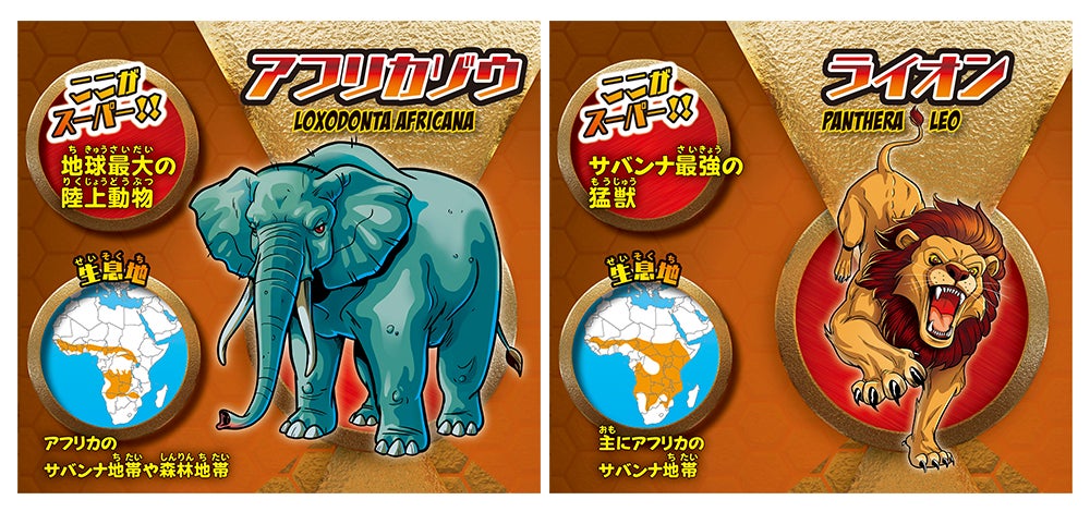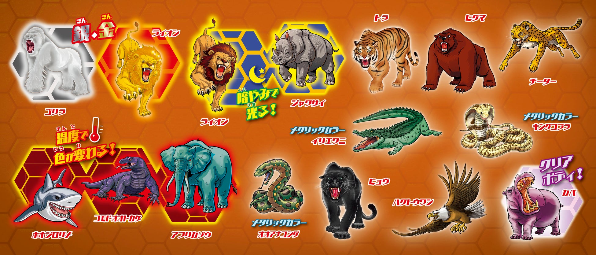 今回は大きさや強さ、速さなど、突出した能力やユニークな特徴を持った動物たちが集結。「地球最大の陸上動物」であるアフリカゾウや「サバンナ最強の猛獣」ライオンをはじめ、陸・海・空に生息する世界の動物を、全16種類ラインナップします。