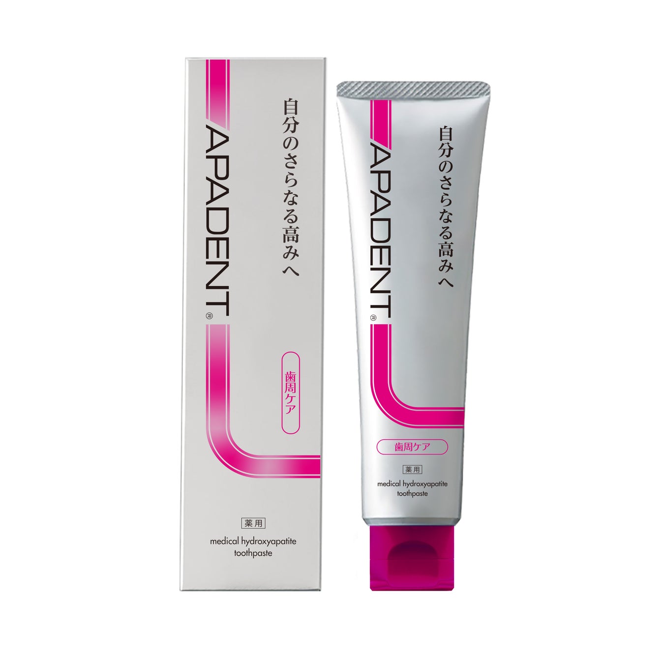 歯みがき剤「アパデント」は、薬用ハイドロキシアパタイトによるむし歯予防に加えて、歯周病*3、口臭などオーラルヘルスを損なうリスクから守るトータルケアブランドです。