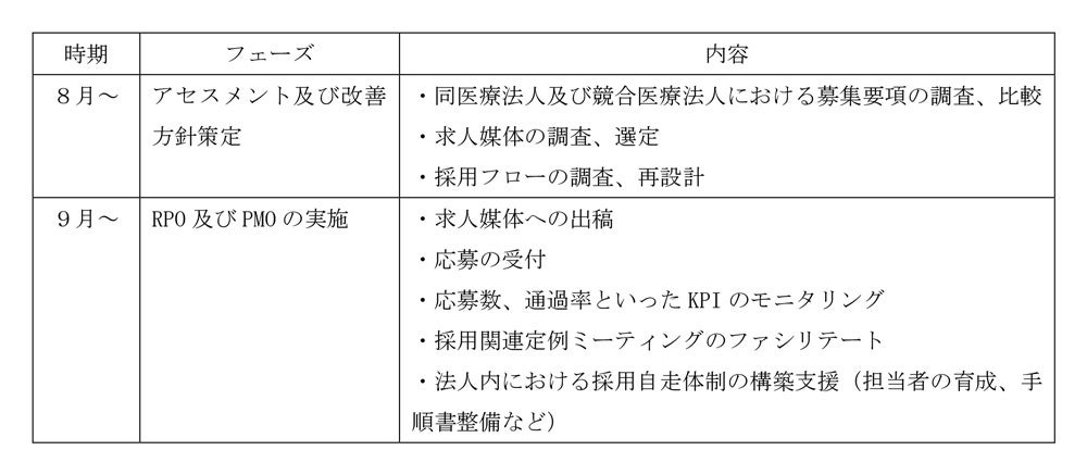 本プロジェクトは、慢性的な人員不足と採用ノウハウの蓄積不足という医療・介護業界共通の構造的課題の解決を目指すものであります。ユカリアとツナググループは共同で、医療法人穂仁会が抱える「急ぎの人員確保」という課題を解決するため、採用アセスメントからRPO(Recruitment Process Outsourcing:採用業務代行)、PMO(Project Management Office:戦略推進支援)までを包括的に支援いたします。