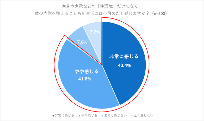 新生活の準備といえば家具・家電などの「住環境」が一般的ですが、今回の調査では85.2%の人が「体の内側を整えること」も同様に不可欠であると回答しました。