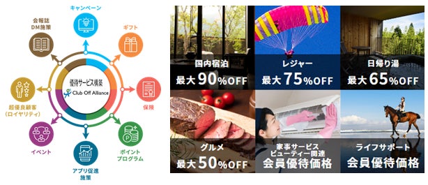 リロクラブのCRM事業は「クラブオフ(Club Off Alliance)」をはじめ、「福利厚生倶楽部」でのノウハウを活かした様々なサービスを展開しております。それぞれの企業が優良顧客を獲得するためのCRMサービスとして高い評価を受けており、付加価値の高いサービス提供とカスタマーエクスペリエンス(CX)の創出は、多くの企業の顧客満足度(CS)アップに繋がっております。
