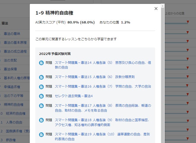 最難関の司法試験・予備試験講座でも「AI実力スコア」を実装試験本番の得点をAIがリアルタイムで予測!