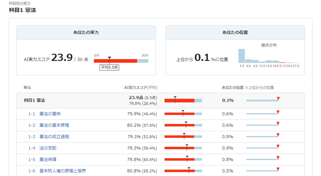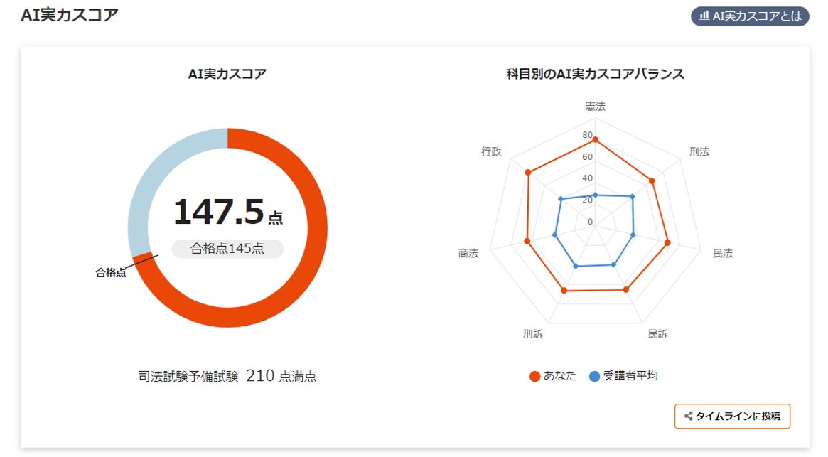 *上記のAI実力スコアは、司法試験及び予備試験の短答式試験が対象となります。
