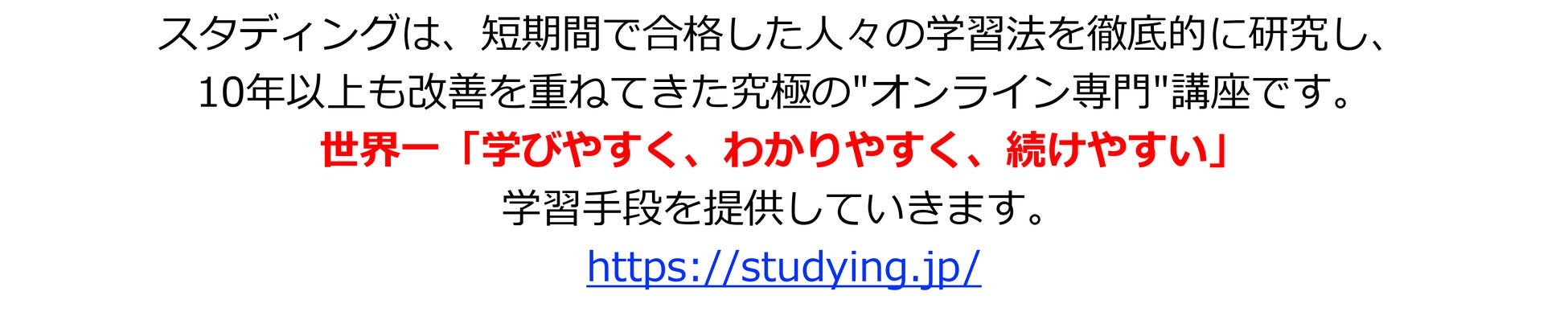*本機能は、現在、スタディング 司法試験・予備試験講座の他、中小企業診断士講座・宅建士講座・社会保険労務士講座・ITパスポート講座・応用情報技術者講座・基本情報技術者講座でご利用いただけます。他の講座についても今後順次対応していく予定です。