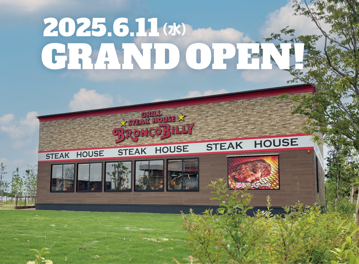 ステーキハウス ブロンコビリーを展開する株式会社ブロンコビリー(本社:愛知県名古屋市 代表取締役社長:阪口 信貴)は、2008年11月に「ブロンコビリー大宮三橋店」を埼玉県に初出店してから16年。県内で14店舗目の出店となる『ステーキハウス ブロンコビリー羽生noNIWA店』を、6月11日(水)10:30にオープンいたします。現在、東海を中心に61店舗・関東48店舗・関西27店舗・九州4店舗と全140店舗を展開しており、羽生noNIWA店は141店舗目となります。