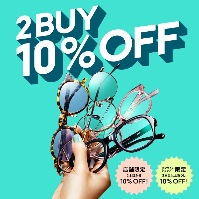 JINSは出費が増えがちなこの時期に、より晴れやかな気持ちで新生活を送れるように応援の気持ちを込めて、メガネやサングラスを2本以上ご購入いただくとお得になる新生活応援キャンペーンを、4月13日(木)より全国のJINS店舗とJINSオンラインショップで開始します。本キャンペーンはお一人様だけでなく、新しくできたご友人や新生活を迎えたご家族など、複数名でもご利用いただけます。