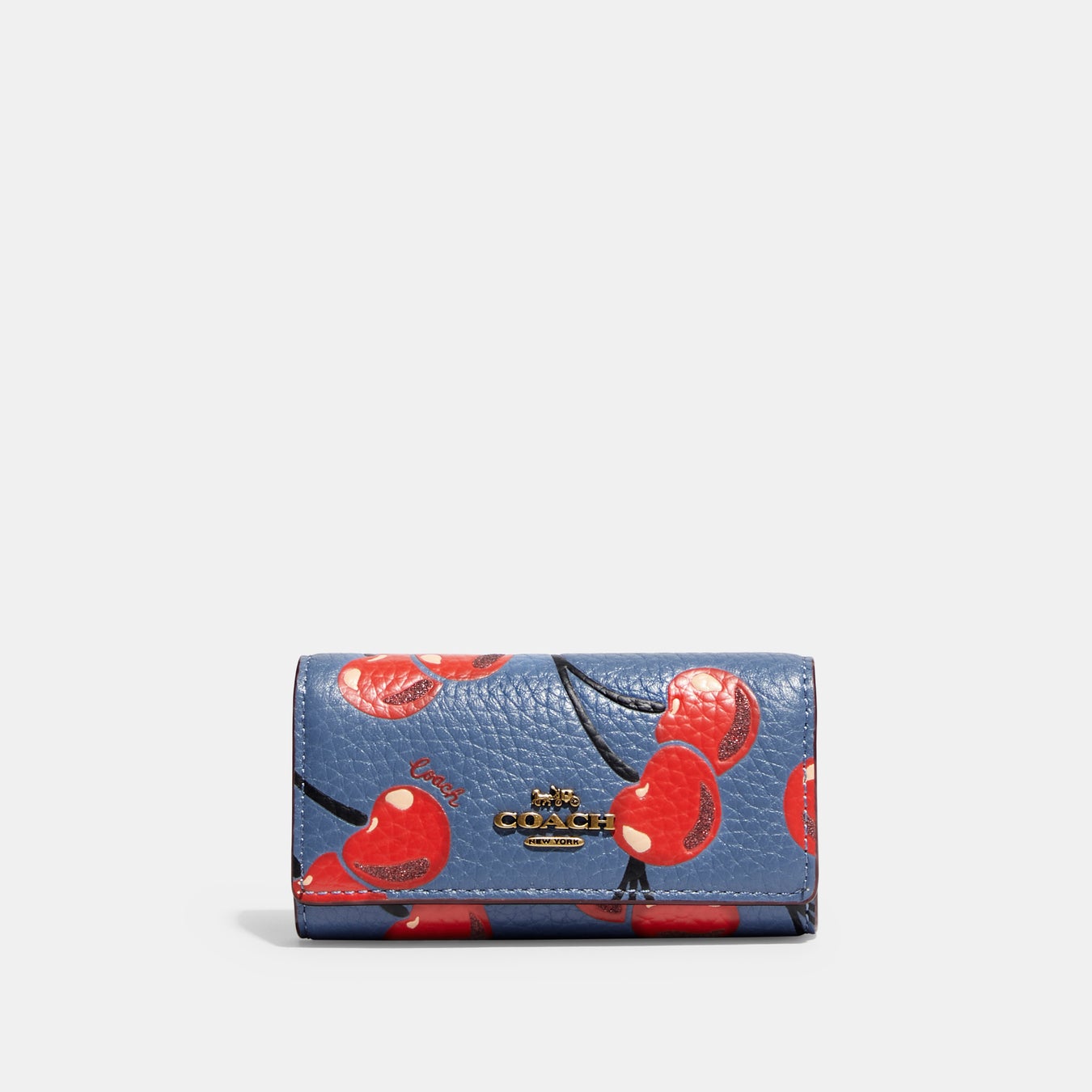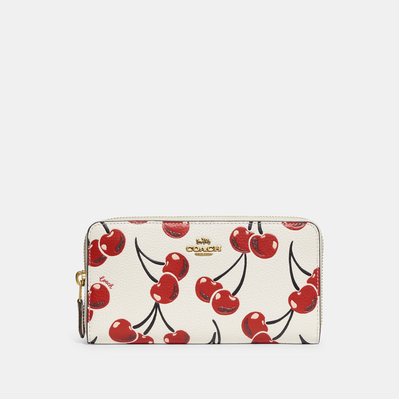 コーチの財布や革小物は、日本のお客様の声を重視し、デザイン性や機能性の高さはもちろんのこと、軽量かつ傷がつきにくい上質なクロスグレインレザーやペブルレザーを採用することで使いやすさとコストパフォーマンスの高さを誇ります。そんなコーチの革小物にも使うたびにハッピーな気持ちになるチェリープリントを施しました。根強い人気のエンベロープ型とジップアラウンド型の長財布、ここ数年でベストセラーになったコンパクトな三つ折り型、そしてスマホを入れてこれ一つでお出かけできちゃうウォレットバッグも2種類取り揃えました。