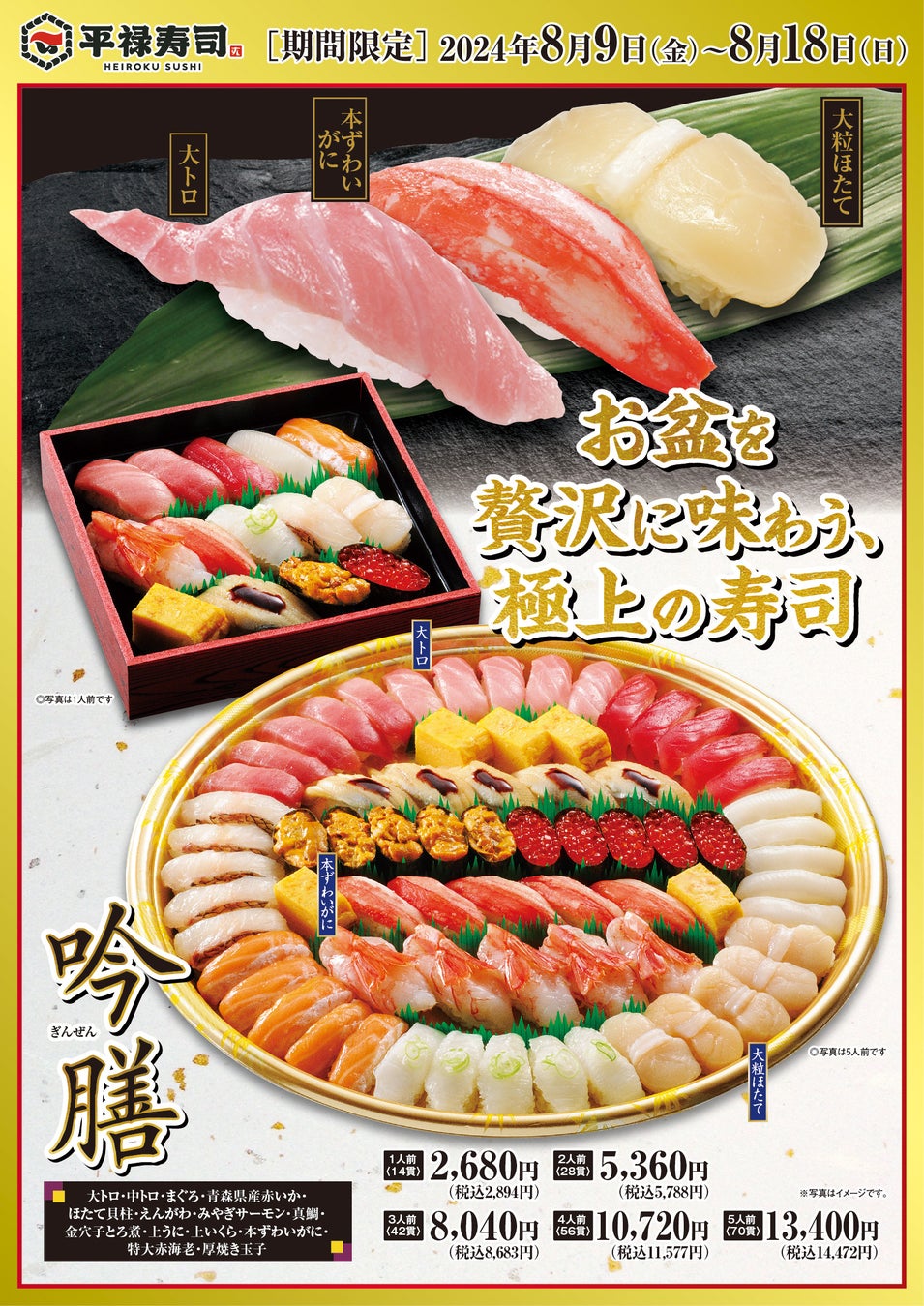 【平禄寿司】お盆を贅沢に味わう、極上の寿司 8/9(金)~ 8/18(日)「吟膳(ぎんぜん)」を発売いたします