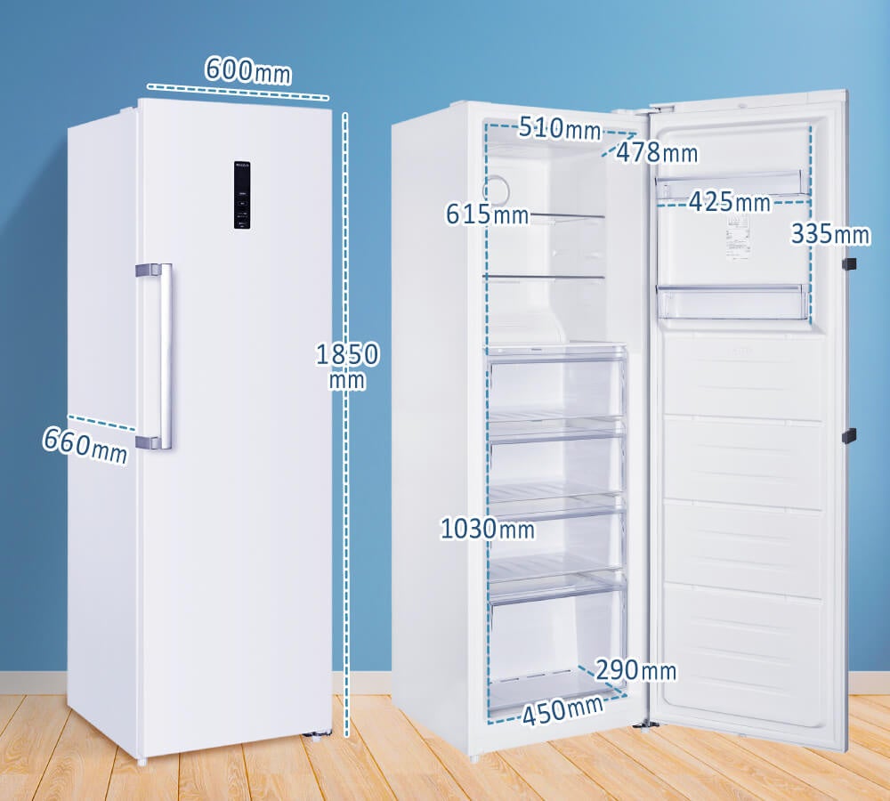 内容量は274Lと大容量ながらも、横幅60cmでコンパクトなサイズ感のためセカンド冷凍庫として設置しやすい大きさです。また、7段収納+ドアポケット付きで食材ごとに分けて保存できます。